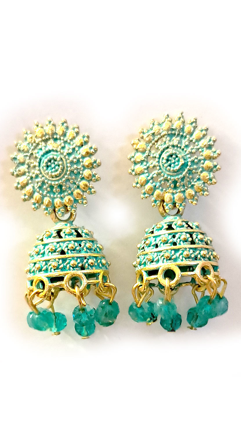 Tradiční severoindické náušnice zaujmou staletími prověřeným vzhledem. Potěší všechny ty, kdo si potrpí na drobnější šperky. Dokonale se hodí jak na bollywoodský tanec, tak pro jiné speciální příležitosti.