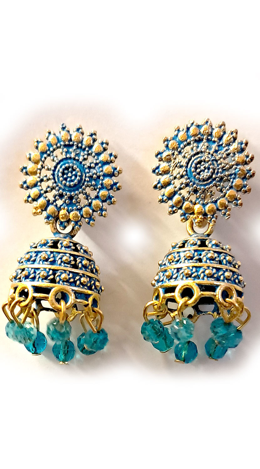 Tradiční severoindické náušnice zaujmou staletími prověřeným vzhledem. Potěší všechny ty, kdo si potrpí na drobnější šperky. Dokonale se hodí jak na bollywoodský tanec, tak pro jiné speciální příležitosti.