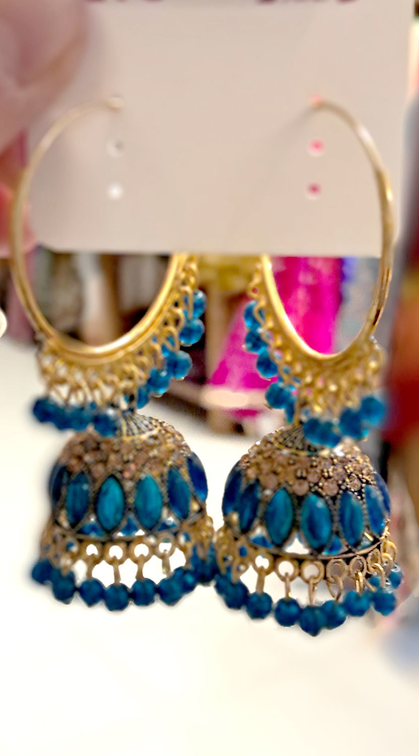 Překrásné zdobené kruhové náušnice s výraznou jhunkou jsou ozdobeny krásnými korálky. Dokonale se hodí jak na bollywoodský tanec, tak pro jiné speciální příležitosti.