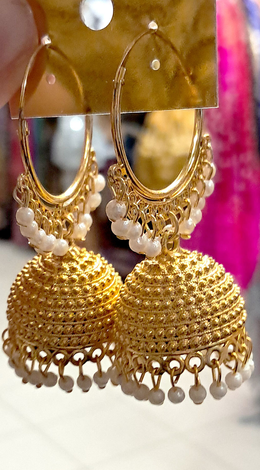 Překrásné zdobené kruhové náušnice s výraznou jhunkou jsou ozdobeny korálky. Skvěle imitují 24 karátové zlato. Dokonale se hodí jak na bollywoodský tanec, tak pro jiné speciální příležitosti.