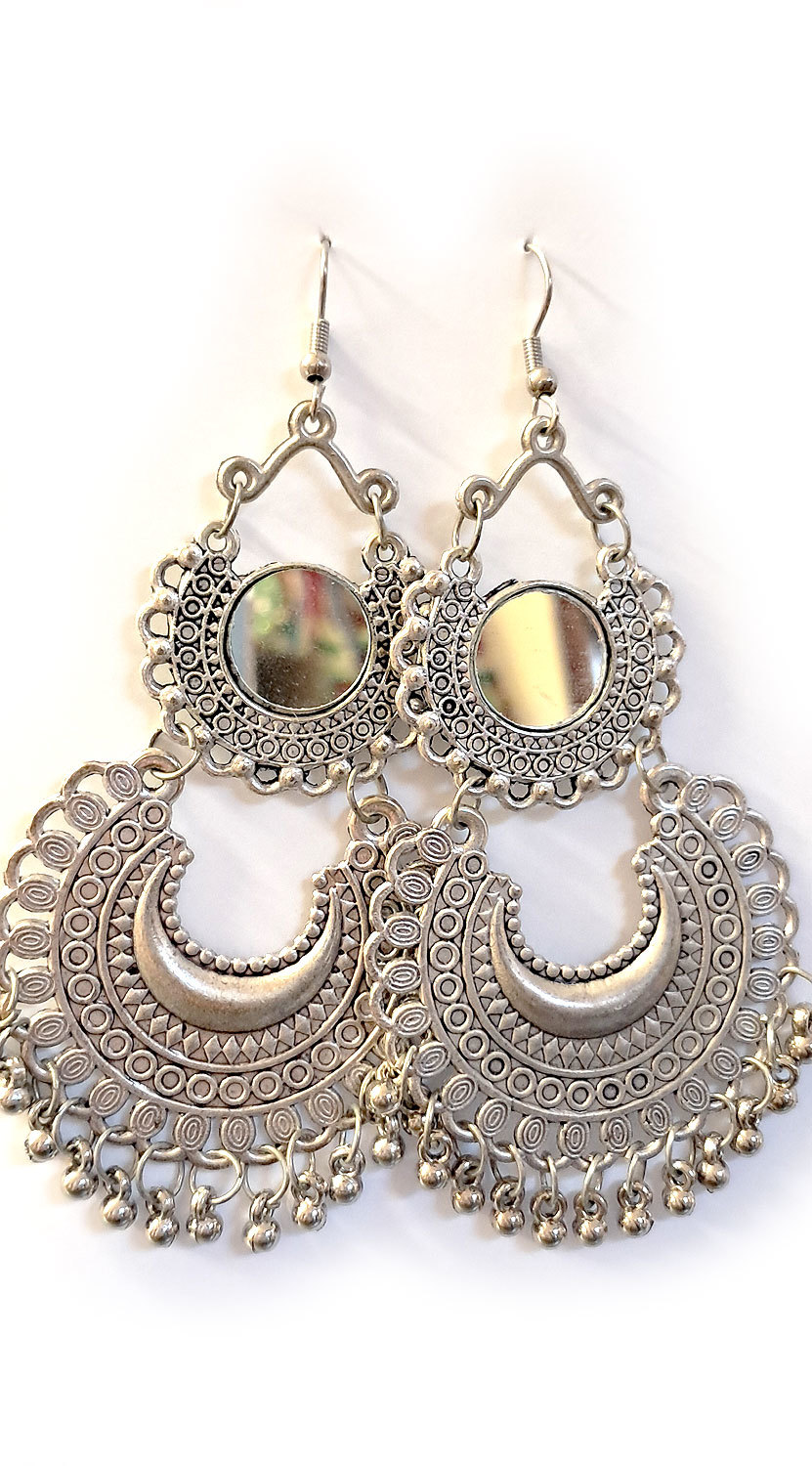 Obrovské etno náušnice se zrcátky nau2168