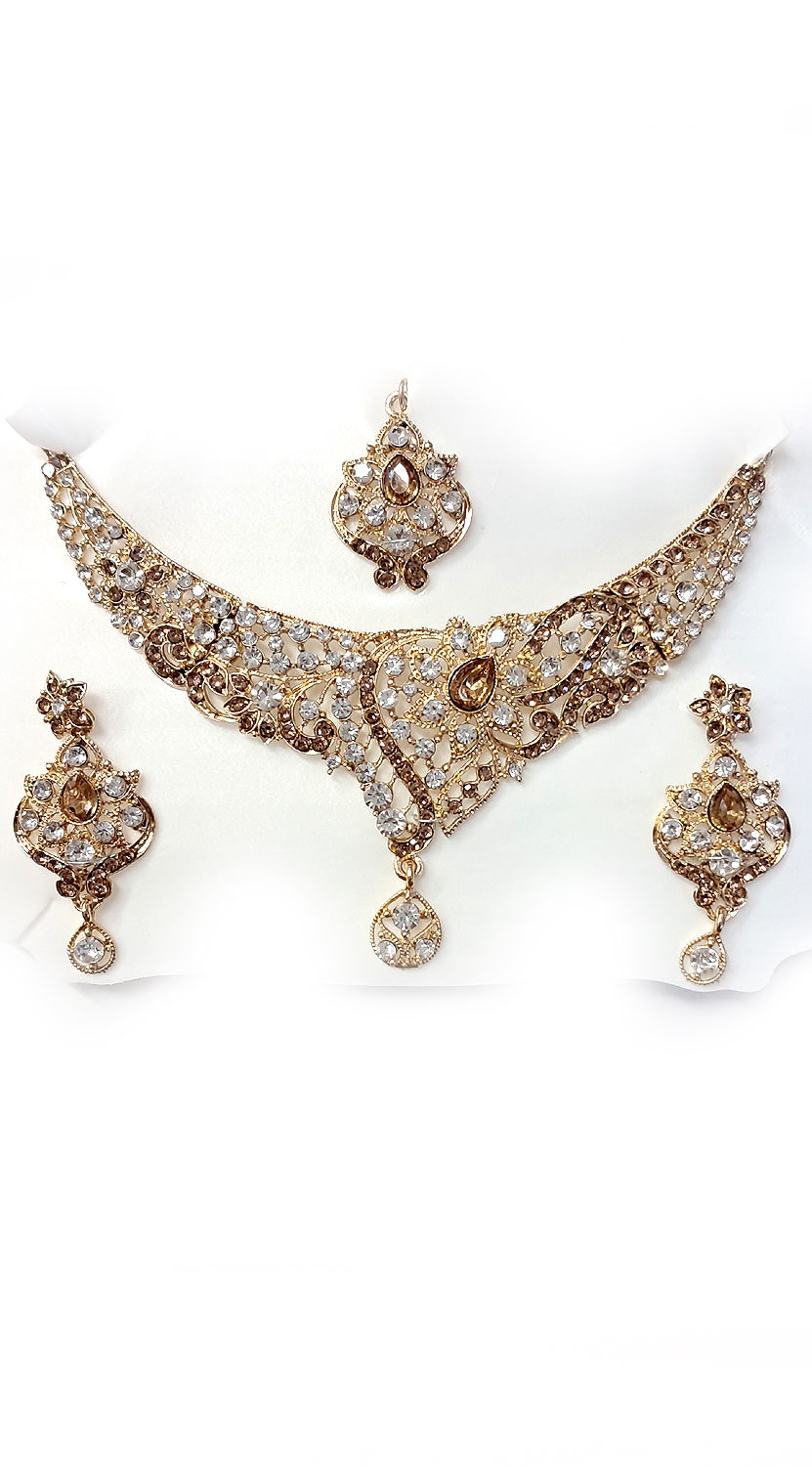 Už po mnoho let nejoblíbenější typ šperkové soupravy - s bohatým zdobením bude vypadat skvěle i k evropskému oblečení. Souprava sestává z náušnic, náhrdelníku (se zapínáním na zatahovací provázek) a tikky. Vhodná je jak na bollywood, tak jako doplňek sárí či šatů - jako exkluzivní šperk k večerním šatům vypadá přímo božsky. Tato souprava byla vyrobena exkluzivně na objednávku.