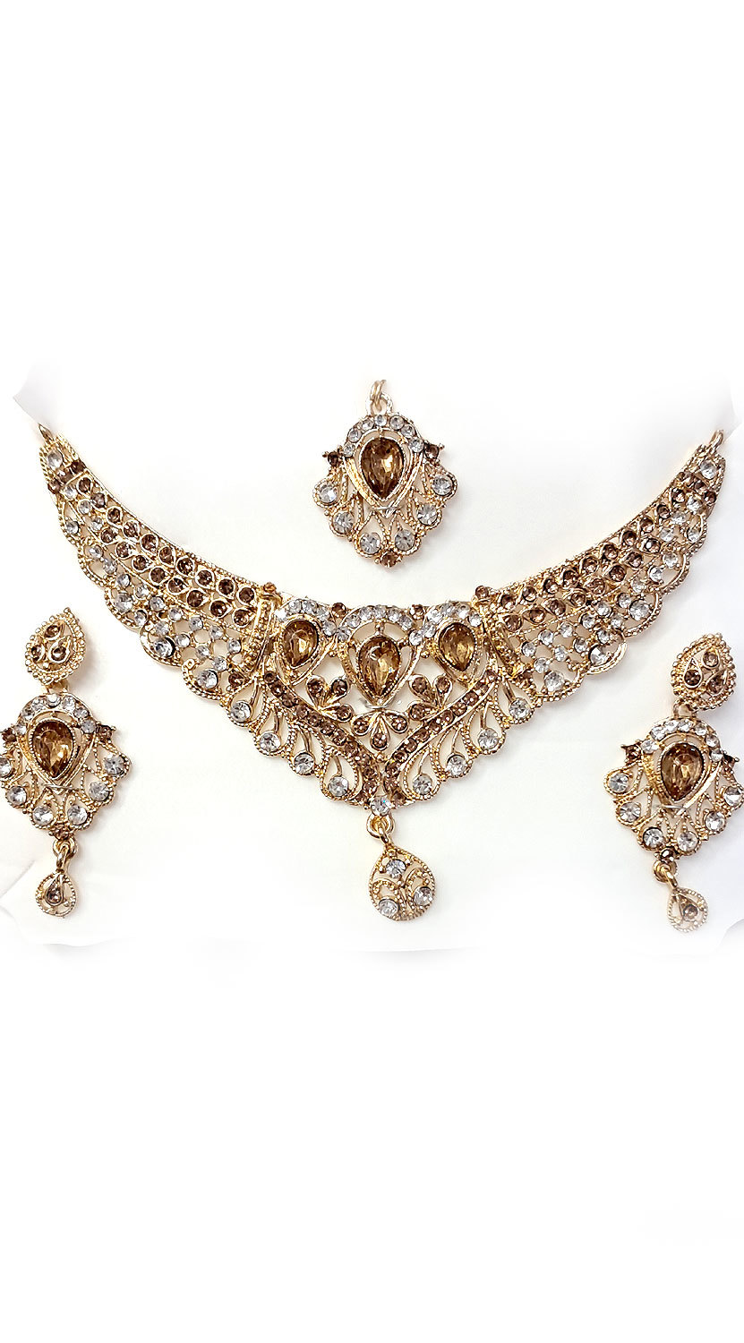 Už po mnoho let nejoblíbenější typ šperkové soupravy - s bohatým zdobením bude vypadat skvěle i k evropskému oblečení. Souprava sestává z náušnic, náhrdelníku (se zapínáním na zatahovací provázek) a tikky. Vhodná je jak na bollywood, tak jako doplňek sárí či šatů - jako exkluzivní šperk k večerním šatům vypadá přímo božsky. Tato souprava byla vyrobena exkluzivně na objednávku.