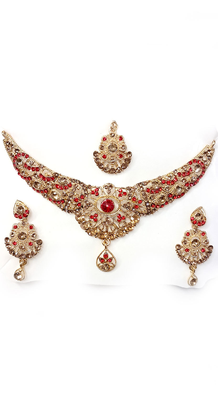 Už po mnoho let nejoblíbenější typ šperkové soupravy - s bohatým zdobením bude vypadat skvěle i k evropskému oblečení. Souprava sestává z náušnic, náhrdelníku (se zapínáním na zatahovací provázek) a tikky. Vhodná je jak na bollywood, tak jako doplňek sárí či šatů - jako exkluzivní šperk k večerním šatům vypadá přímo božsky. Tato souprava byla vyrobena exkluzivně na objednávku.