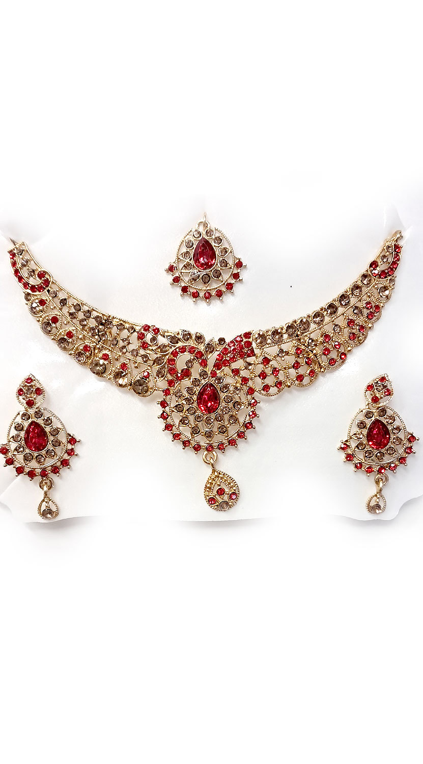 Souprava šperků bollywood za super cenu zlatá barva s červenou ks1897