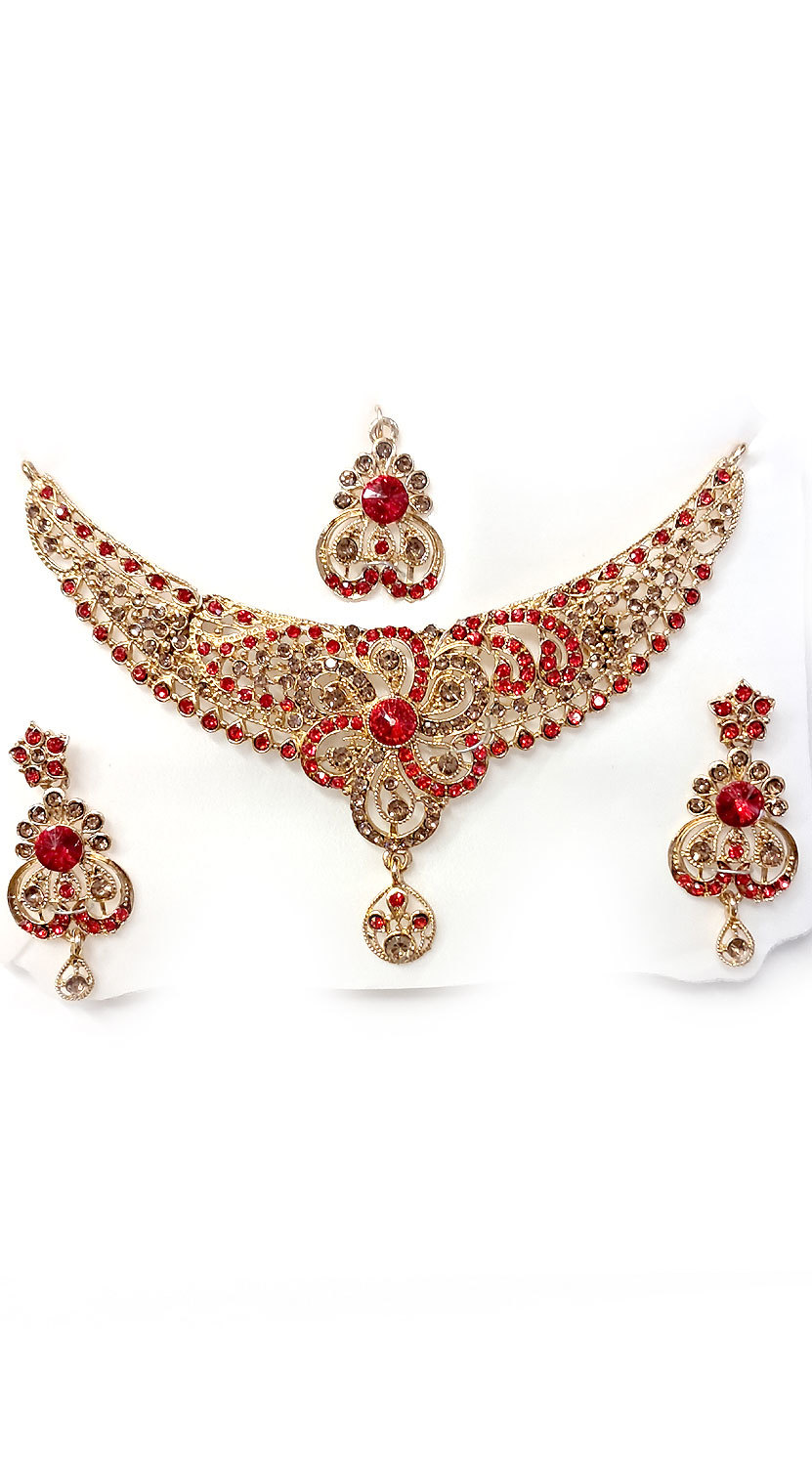 Už po mnoho let nejoblíbenější typ šperkové soupravy - s bohatým zdobením bude vypadat skvěle i k evropskému oblečení. Souprava sestává z náušnic, náhrdelníku (se zapínáním na zatahovací provázek) a tikky. Vhodná je jak na bollywood, tak jako doplňek sárí či šatů - jako exkluzivní šperk k večerním šatům vypadá přímo božsky. Tato souprava byla vyrobena exkluzivně na objednávku.