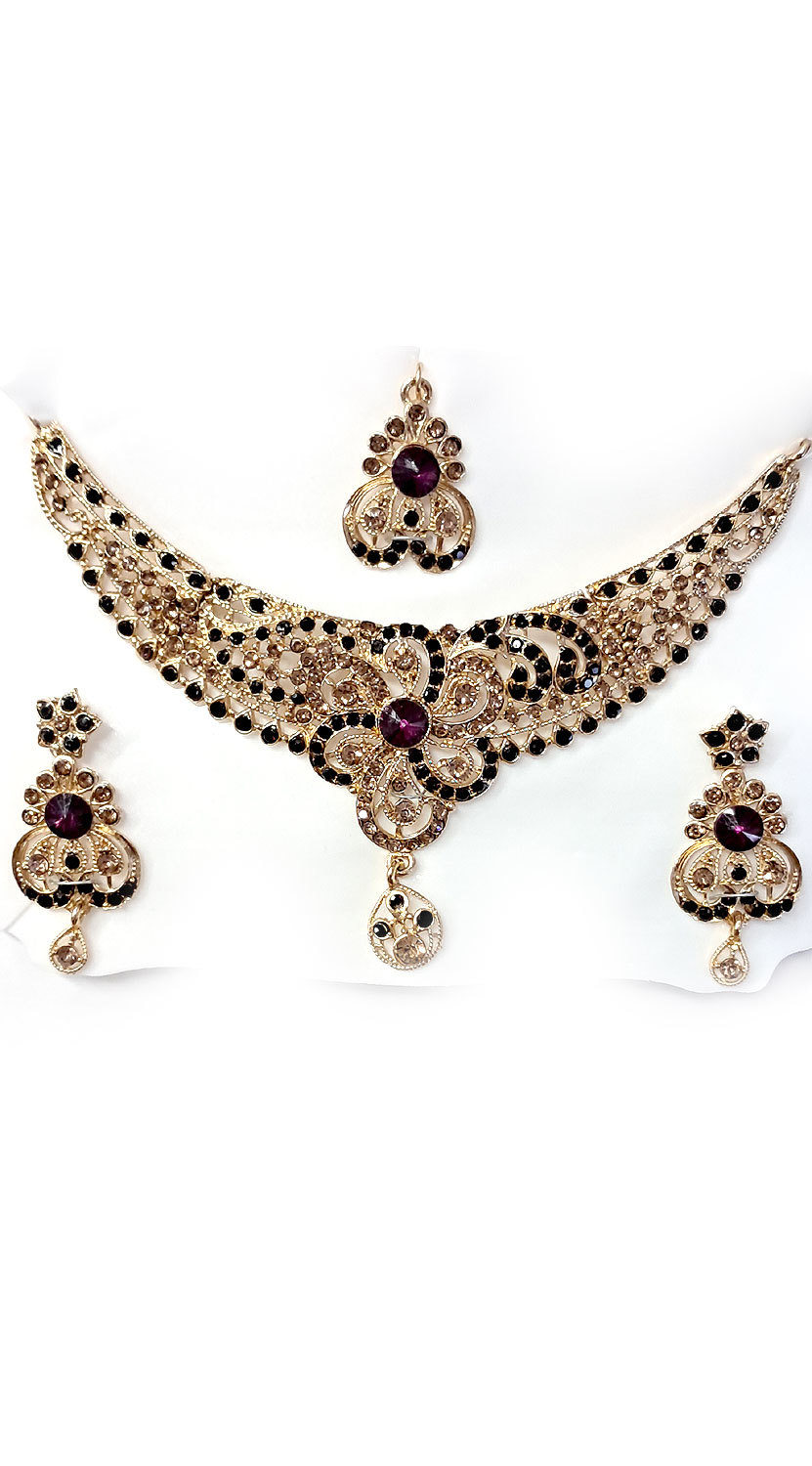 Souprava šperků bollywood za super cenu zlatá barva s fialovou ks1888