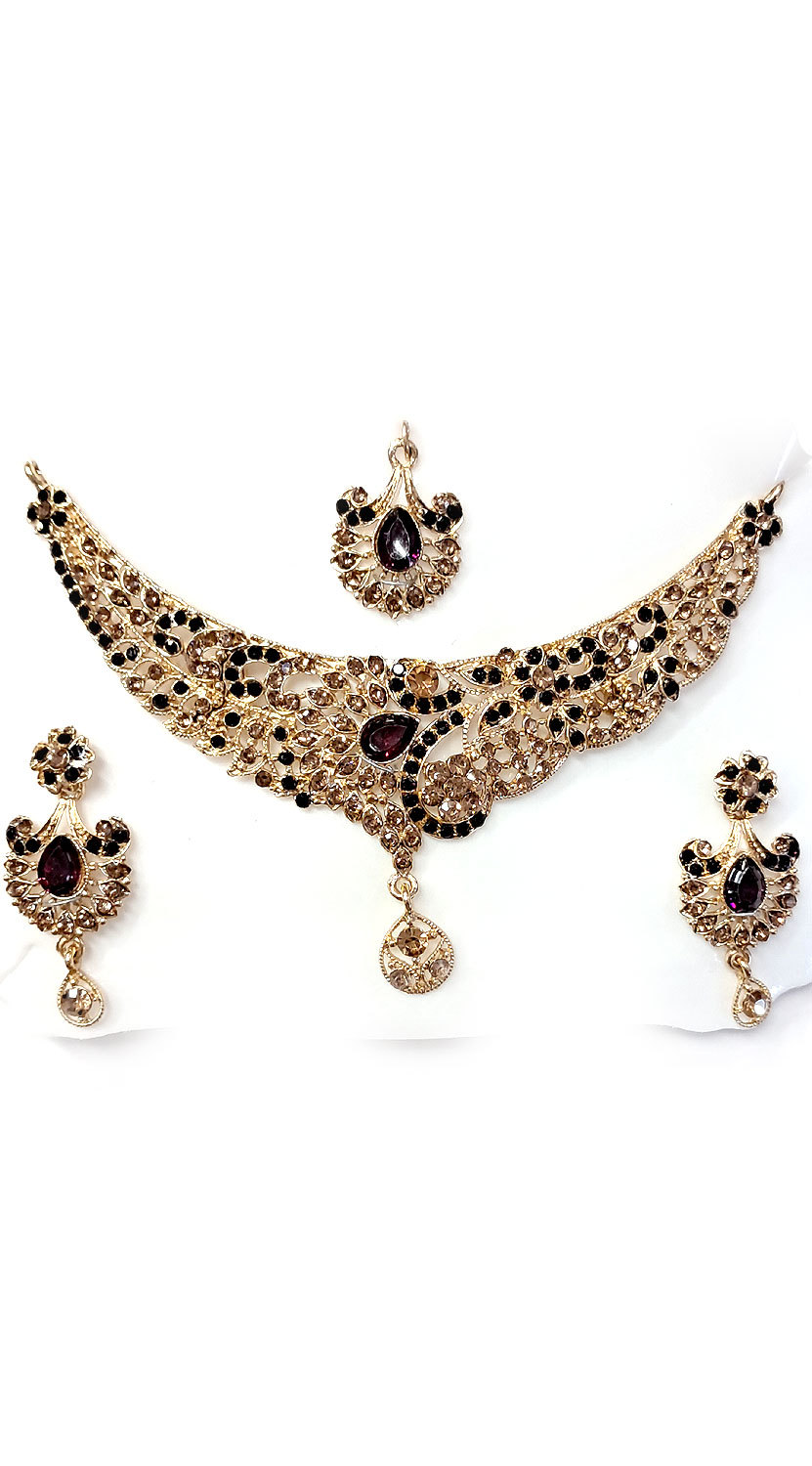 Souprava šperků bollywood za super cenu zlatá barva s fialovou ks1889