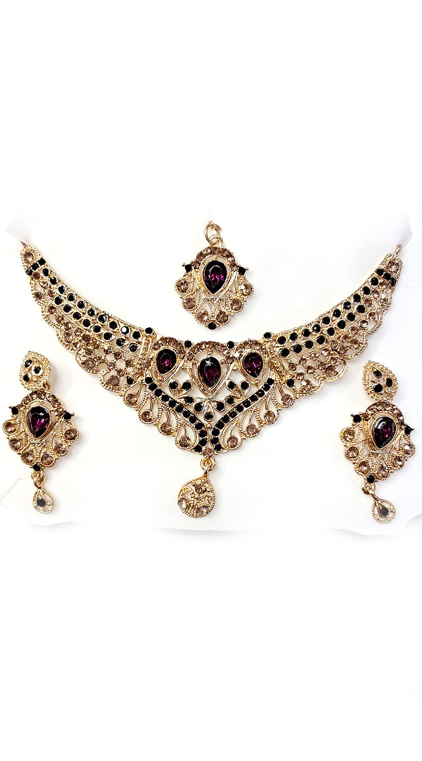 Souprava šperků bollywood za super cenu zlatá barva s fialovou ks1890