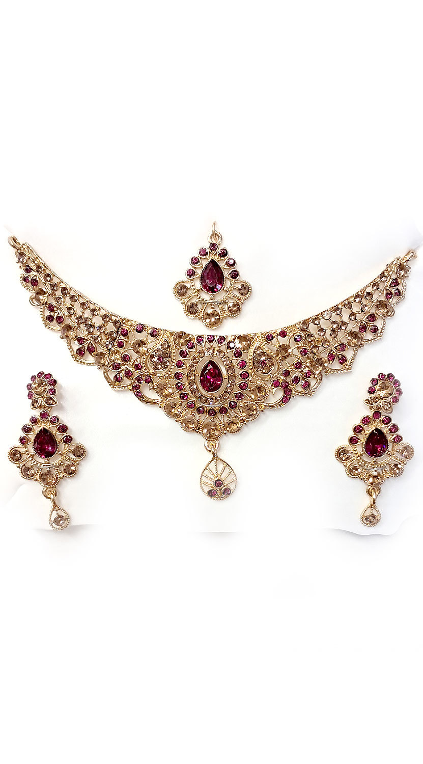 Souprava šperků bollywood za super cenu zlatá barva s fuchsiovou ks1894