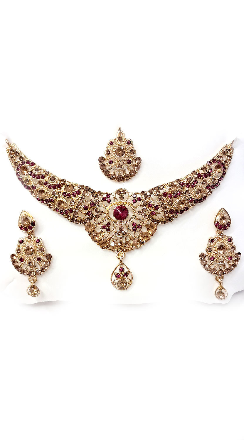 Souprava šperků bollywood za super cenu zlatá barva s fuchsiovou ks1915