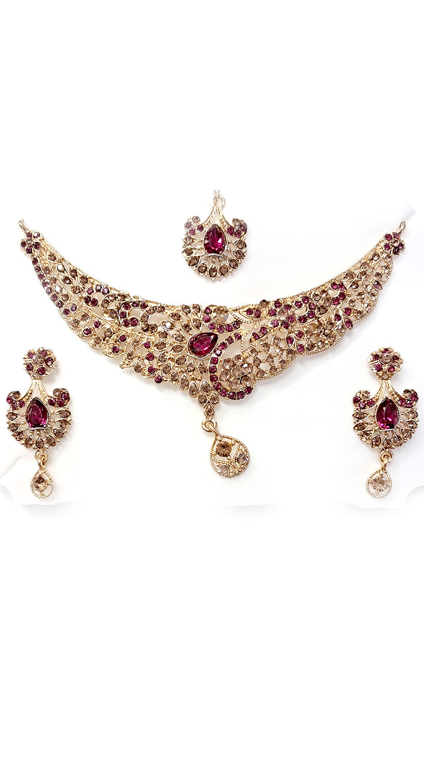 Souprava šperků bollywood za super cenu zlatá barva s fuchsiovou ks1916