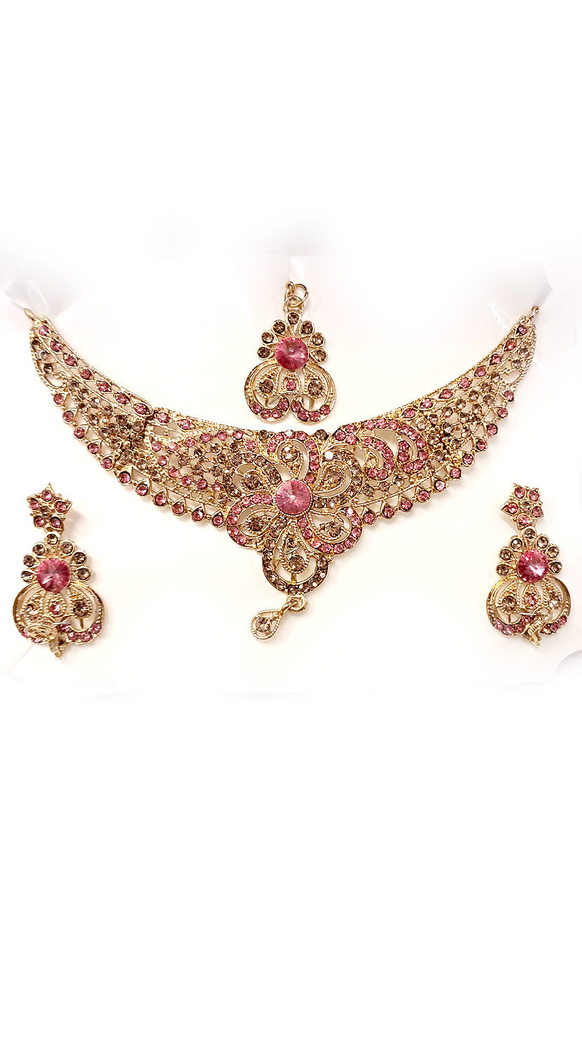 Souprava šperků bollywood za super cenu zlatá barva s růžovou ks1910