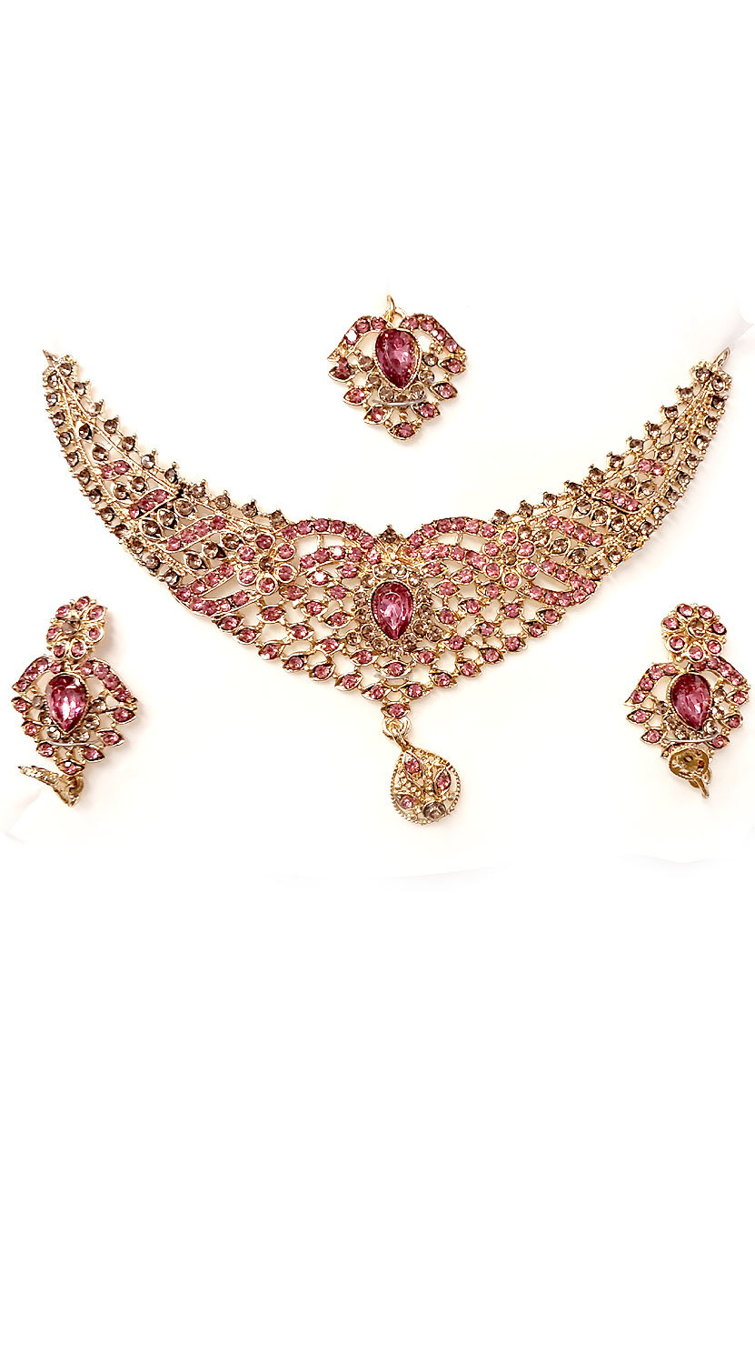 Souprava šperků bollywood za super cenu zlatá barva s růžovou ks1912