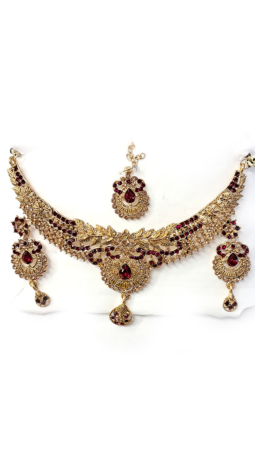 Souprava šperků bollywood za super cenu zlatá barva s vínovou ks1891