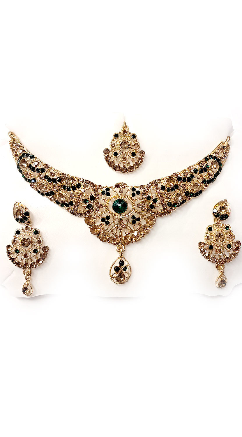 Souprava šperků bollywood za super cenu zlatá barva se zelenou ks1893