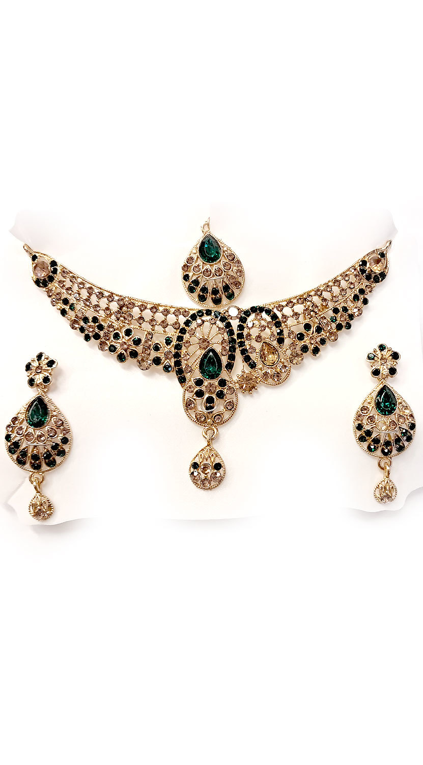 Souprava šperků bollywood za super cenu zlatá barva se zelenou ks1906