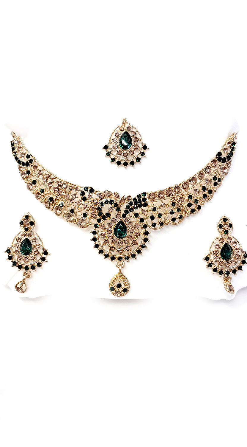 Souprava šperků bollywood za super cenu zlatá barva se zelenou ks1908